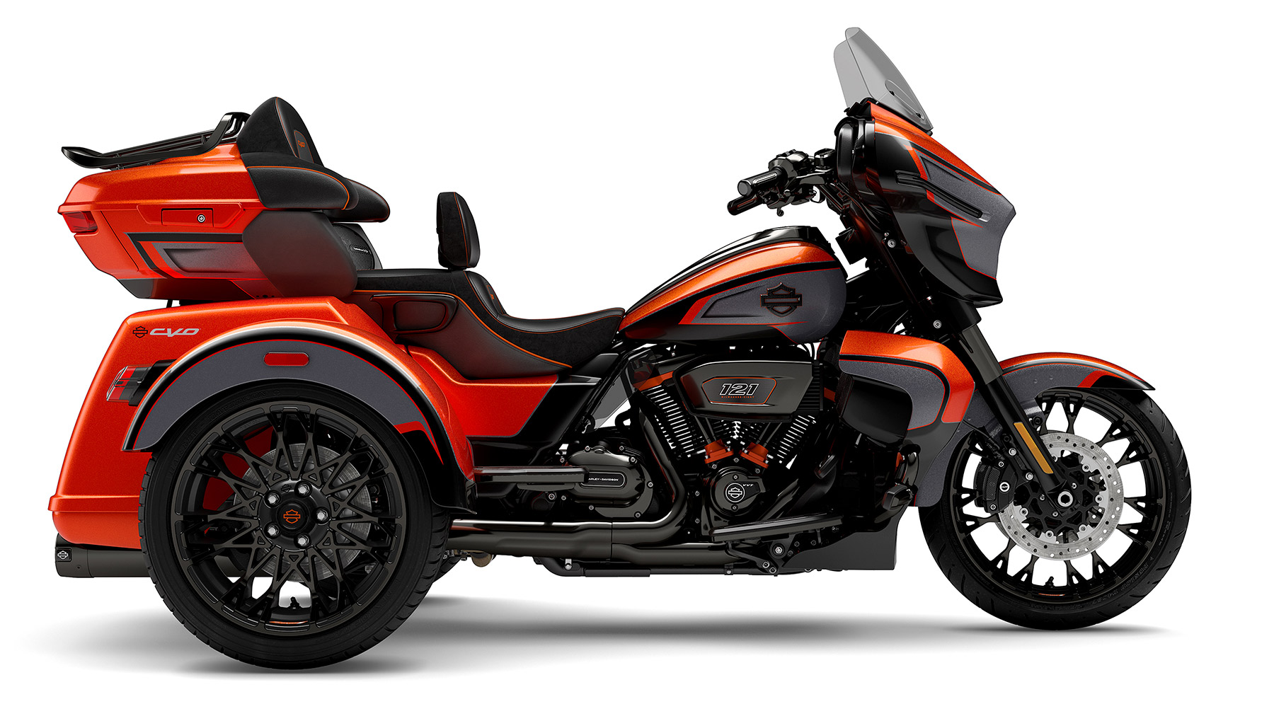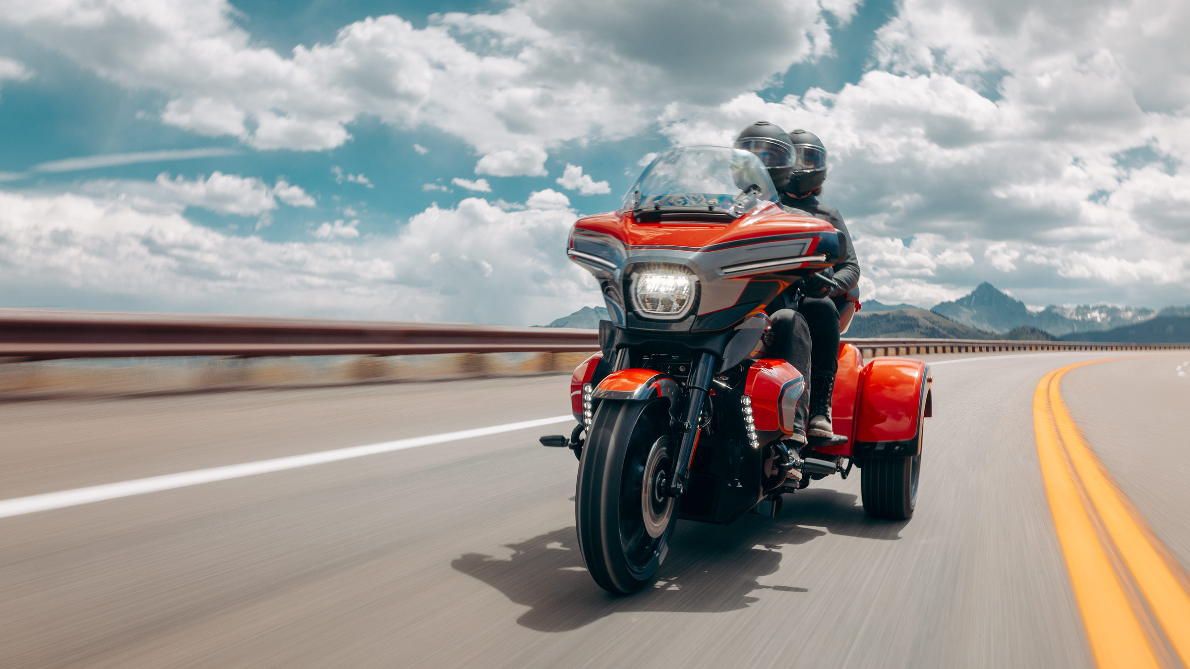 Croyez-nous, ce Trike a été totalement réinventé. Le modèle CVO Street Glide 3 Limited est équipé du moteur Milwaukee-Eight® VVT 121, associé à des suspensions repensées et à une nouvelle marche arrière qui rend le Touring sur trois roues à la fois impressionnant et rassurant. Les selles chauffantes, le nouveau Grand Tour-Pak™ entièrement repensé, l’écran TFT de 312 mm avec système Skyline™ OS, le son H-D® Premium et les couleurs exclusives CVO font de cette machine une légende.